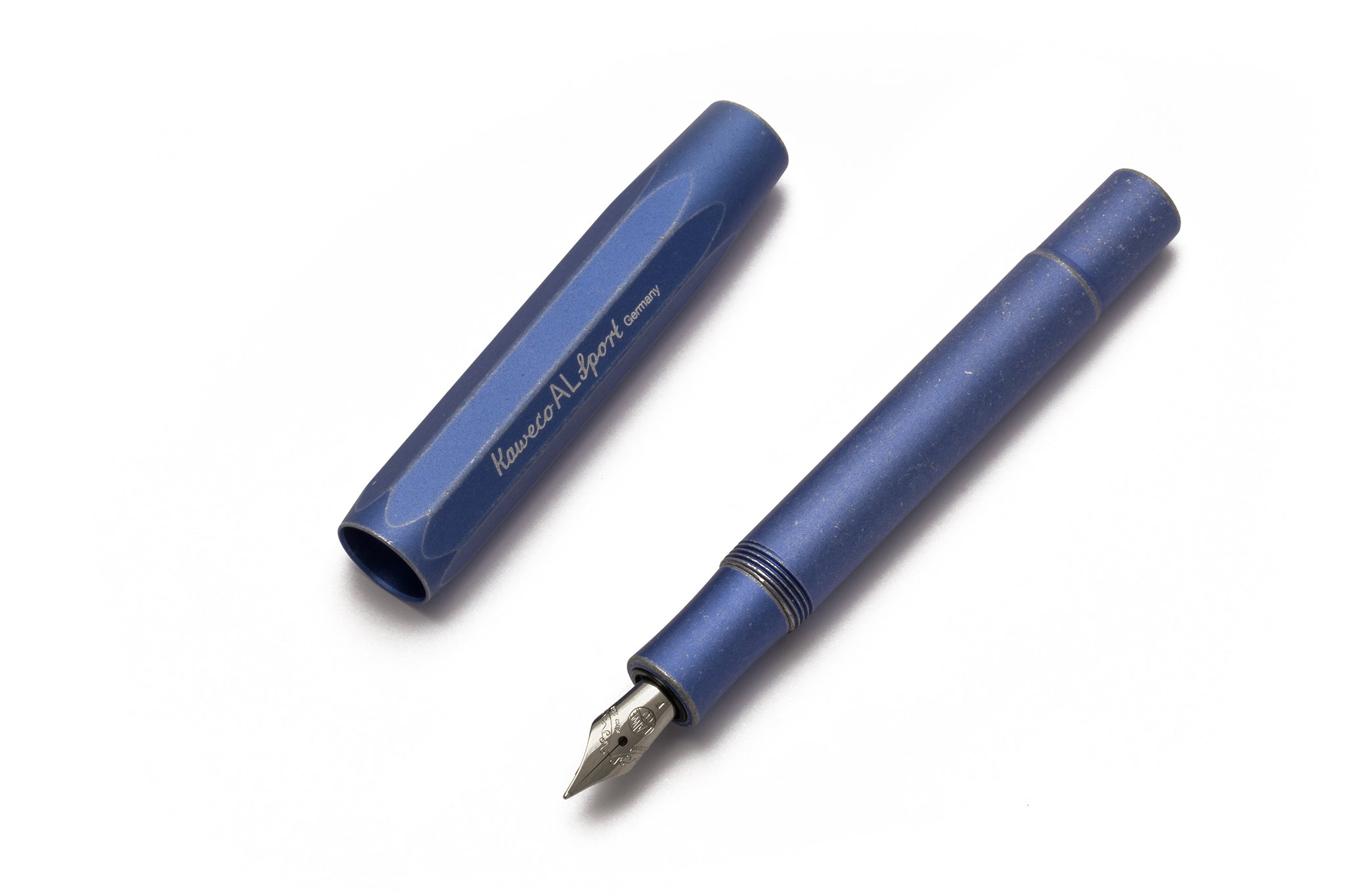 A cool stonewashed blue fountain pen with steel nib and iridium tip for ink cartridges or squeeze converter (see our Kaweco parts). It looks like a pair of jeans but writes a lot smoother! It's convenient size allows you to throw this fountain pen in your pocket for every day use. Add an optional clip and squeeze converter to round off your writing experience.