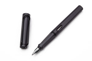 This classic Lamy Safari fountain pen comes in brilliant dark steel black.